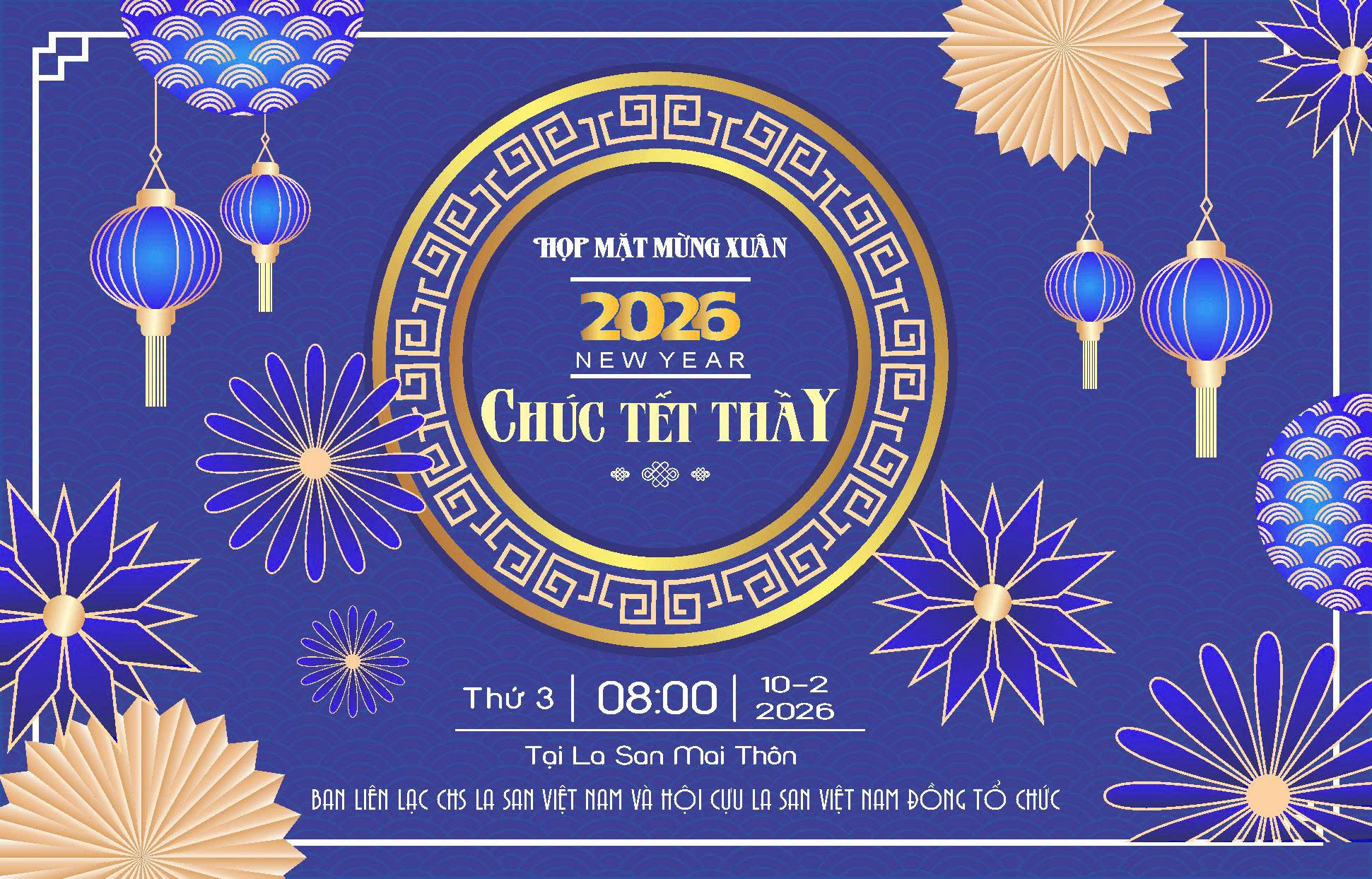 Kính chúc chương tŕnh La San Hội Ngộ 2026 - “Về Nguồn” gặt hái nhiều thành quả tốt đẹp, mang lại những giá trị thiêng liêng và sâu sắc, góp phần tô đậm thêm trang sử La San Việt Nam, đồng thời tiếp nối và làm rạng rỡ truyền thống Ngày Tám Tháng Tám - La San Hội Ngộ của Gia Đ́nh La San.