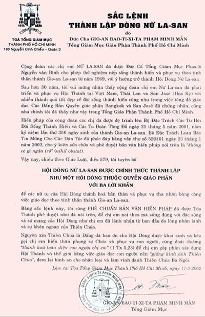 Nam Việt nói chung, của Tỉnh Ḍng La San Saigon nói riêng.