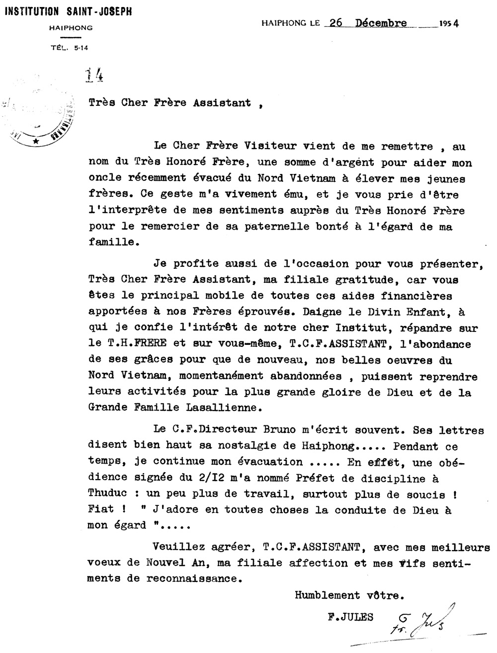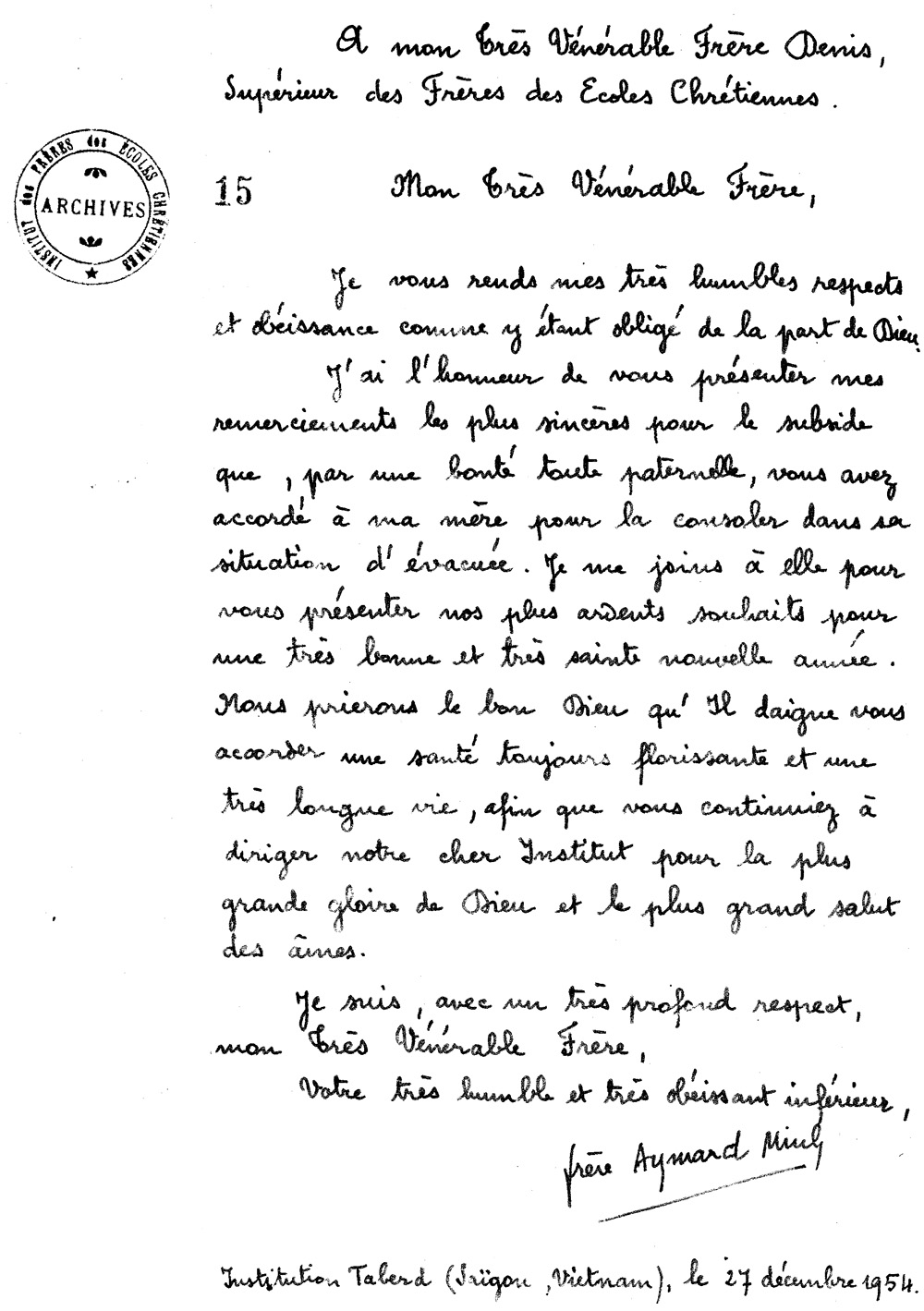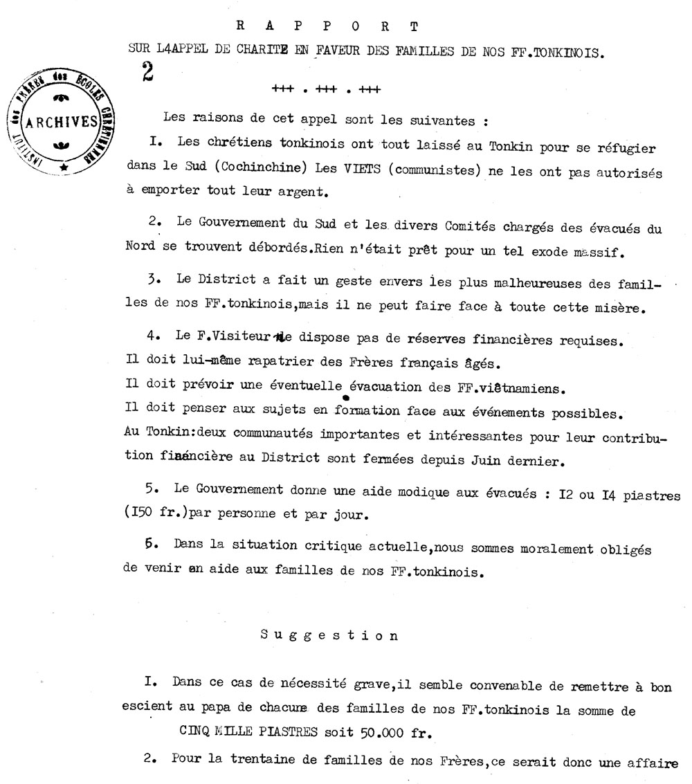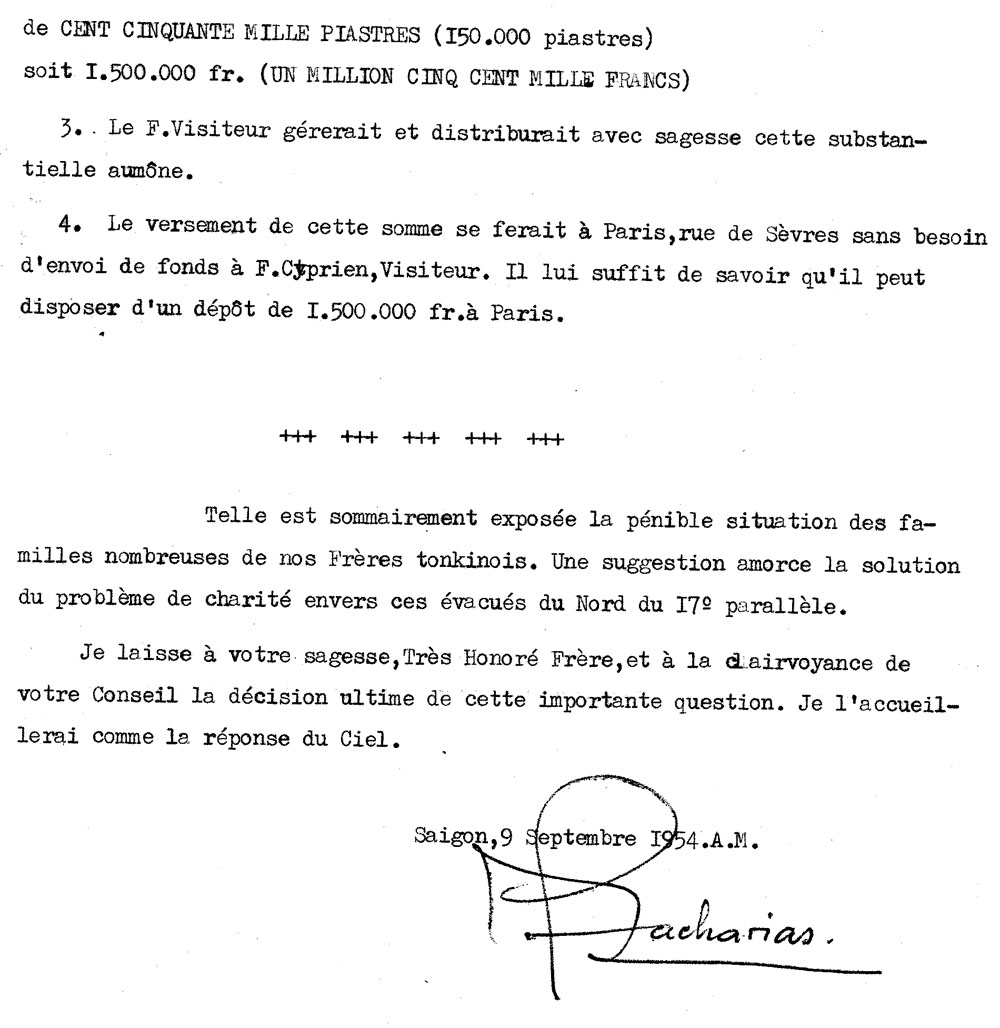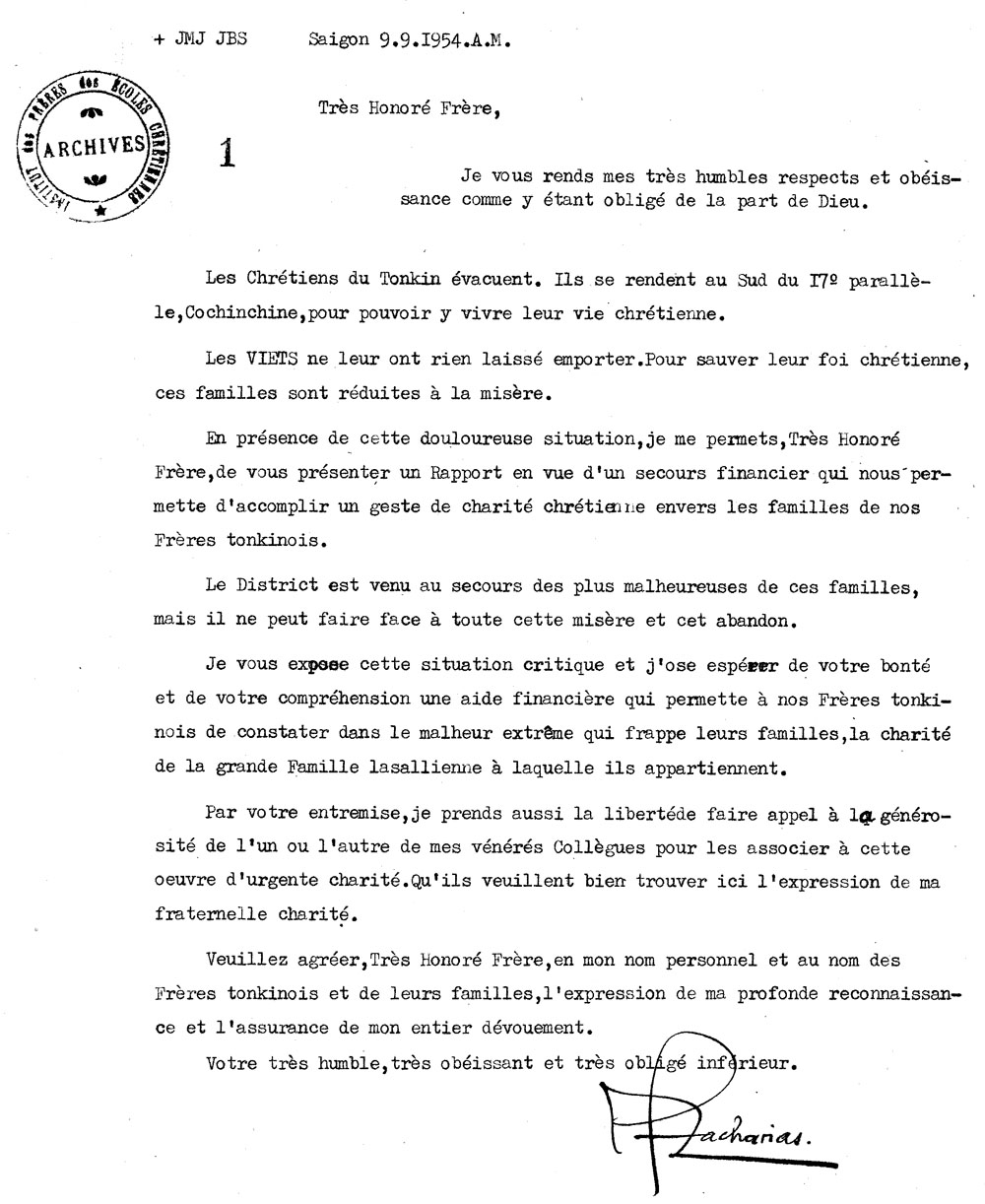 Trong t́nh trạng tranh tối tranh sáng này, Huynh giám tỉnh Trần Văn Thiên không ngừng liên lạc với Trung Ương nhà ḍng, với các cơ quan liên hệ, và lẽ tất nhiên bàn họp với ban cố vấn, với Anh Em trong tỉnh ḍng. Trong thư gởi Huynh phụ tỉnh Zacharias đề ngày 5 tháng 7 năm 1954, Huynh giám tỉnh viết :